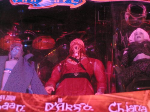 Chiana Has A Helmet And Sword While Zhaan Wears Real Cloth..Exclusive To Scifi.com.Bonus Farscape Trading Card Inside.Includes 3 Of The DRD's, With One That Looks Really Evil Weilding A Knifearm.Crichton's Jacket Is Cloth & Has A Sword & Another Thing I Don't Recognize..Farscape Deluxe 4 Figure Box Set - A Scifi.com Exclusive - Featuring Crichton, Zhaan, D'argo and Chiana with Bonus Farscape Card Features.